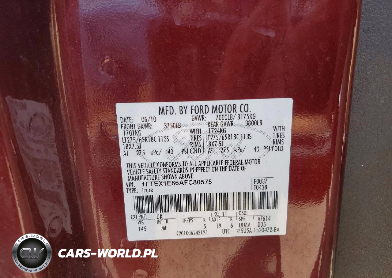 Copart Nr: C-49731976 VIN: 1FTEX1E86AFC80575 Port: Elizabeth, NJ