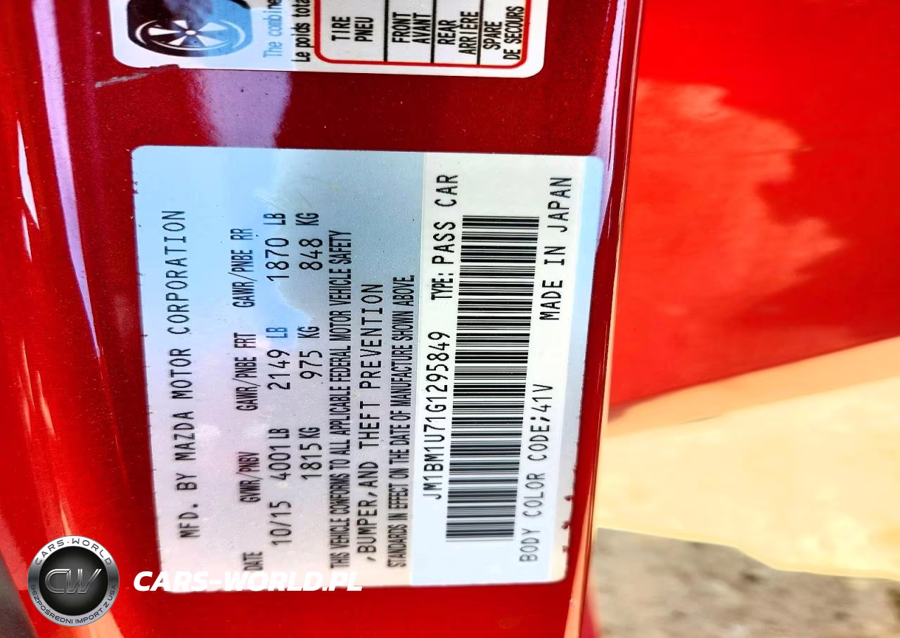 Copart Nr: C-49767226 VIN: JM1BM1U71G1295849 Port: Indianapolis, IN