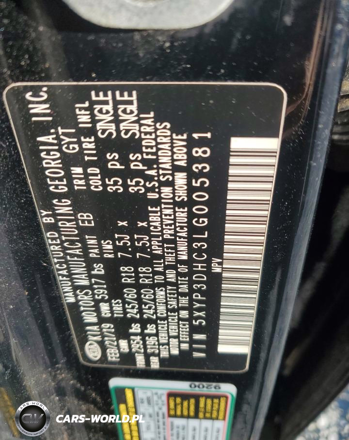 Copart Nr: C-49767826 VIN: 5XYP3DHC3LG005381 Port: Savannah, GA