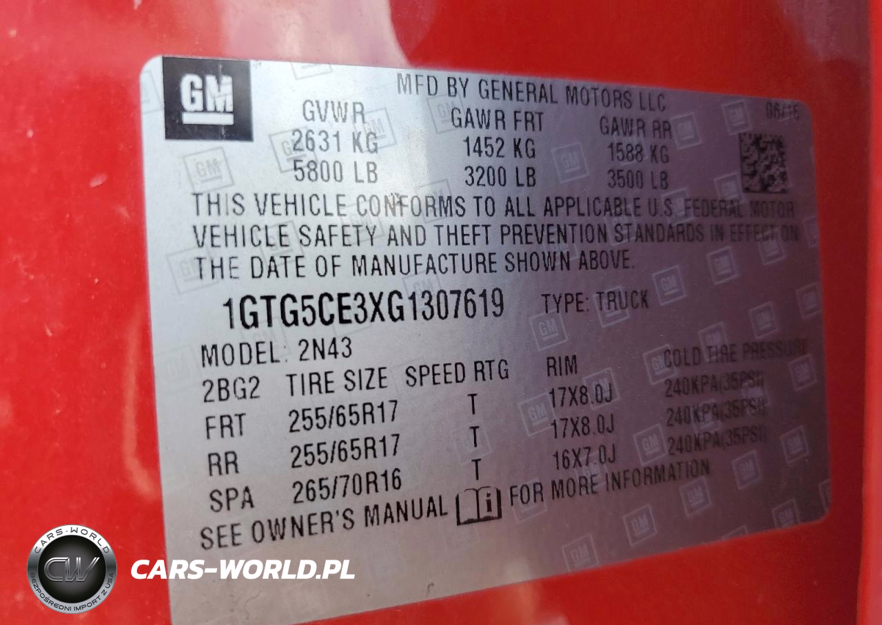 Copart Nr: C-49789156 VIN: 1GTG5CE3XG1307619 Port: Houston, TX