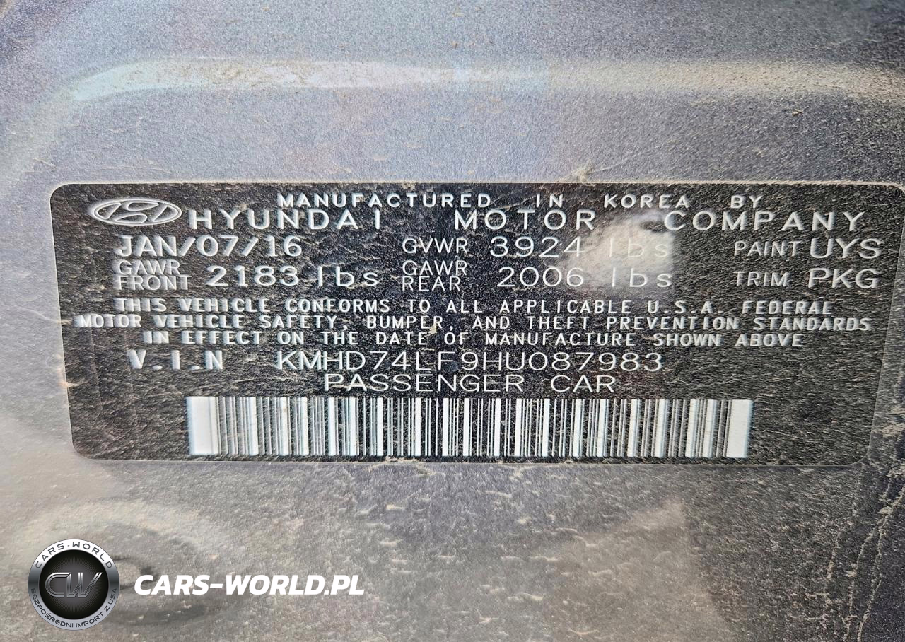 Copart Nr: C-49794966 VIN: KMHD74LF9HU087983 Port: Los Angeles, CA