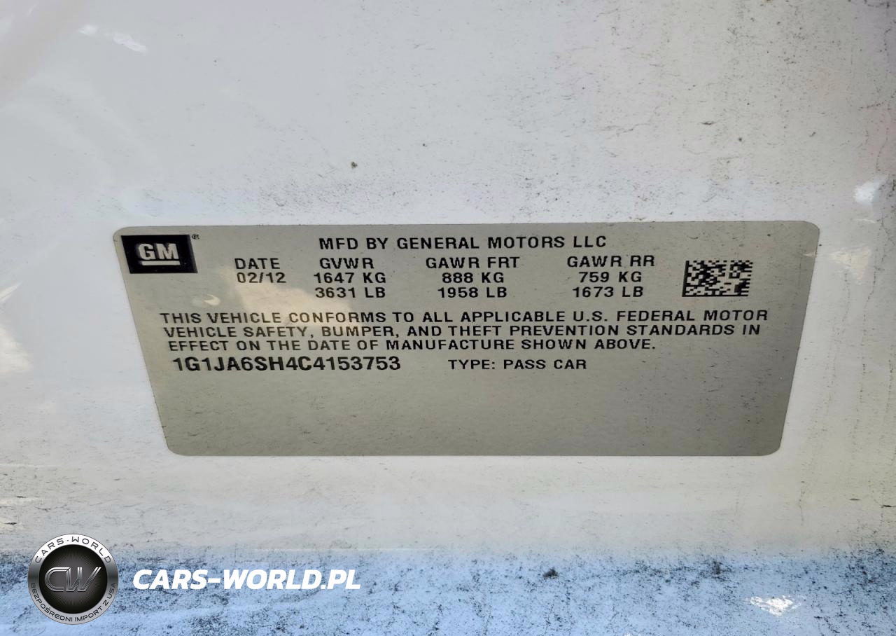Copart Nr: C-49820116 VIN: 1G1JA6SH4C4153753 Port: Los Angeles, CA
