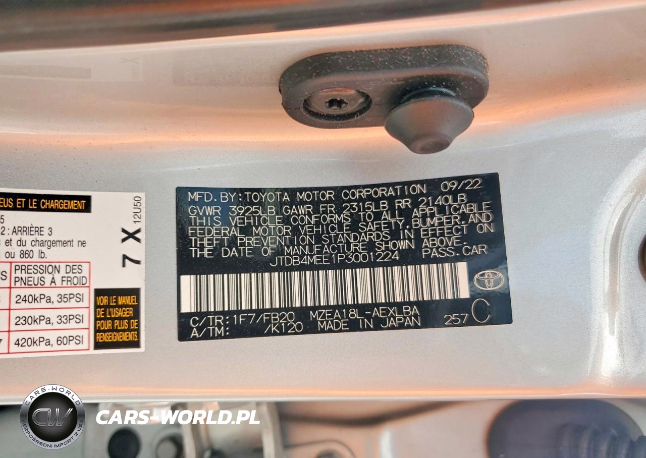 Copart Nr: C-49822346 VIN: JTDB4MEE1P3001224 Port: Savannah, GA