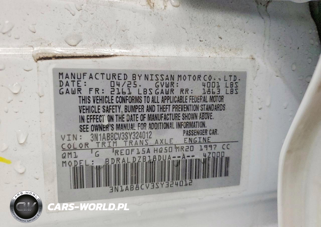 Copart Nr: C-49842856 VIN: 3N1AB8CV3SY324012 Port: Savannah, GA