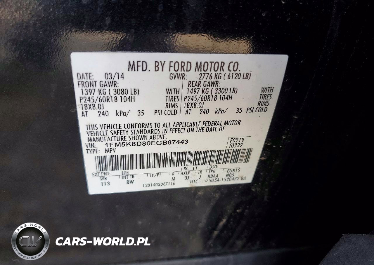 Copart Nr: C-49851686 VIN: 1FM5K8D80EGB87443 Port: Elizabeth, NJ