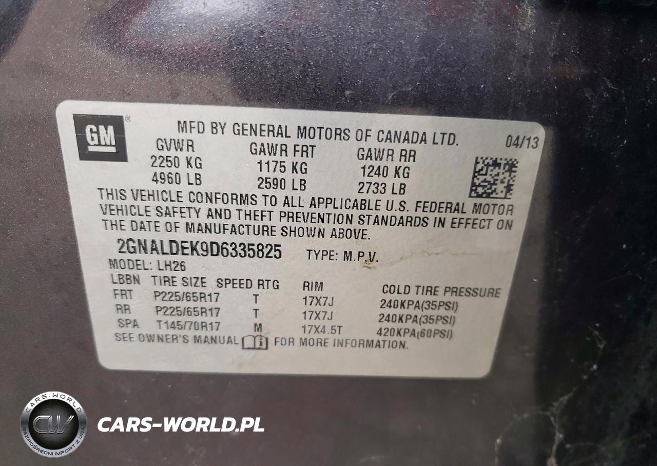 Copart Nr: C-49853796 VIN: 2GNALDEK9D6335825 Port: Indianapolis, IN