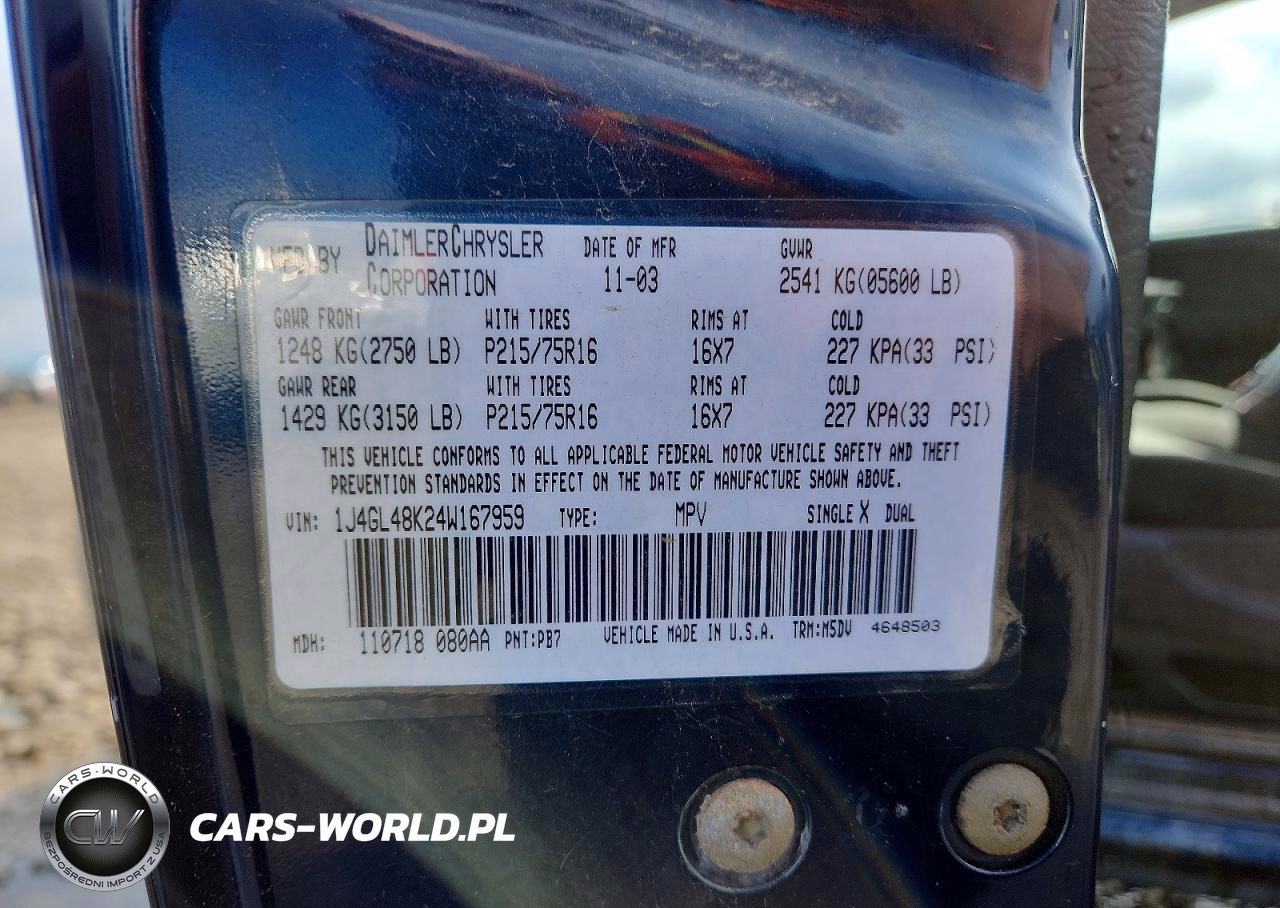 Copart Nr: C-49858036 VIN: 1J4GL48K24W167959 Port: Indianapolis, IN
