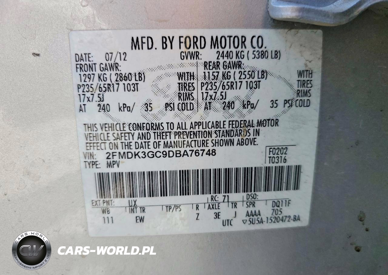 Copart Nr: C-49862706 VIN: 2FMDK3GC9DBA76748 Port: Los Angeles, CA