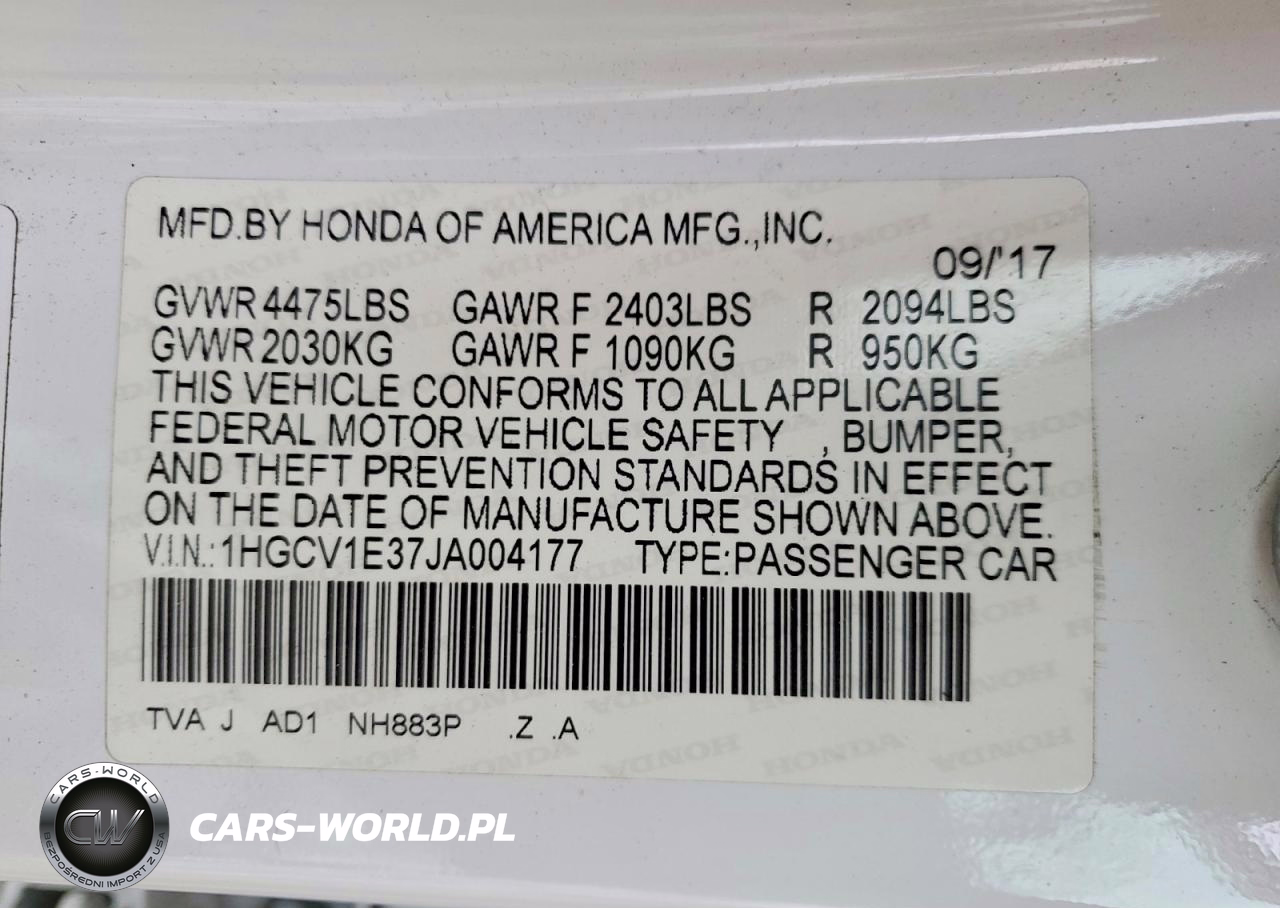Copart Nr: C-49874246 VIN: 1HGCV1E37JA004177 Port: Elizabeth, NJ