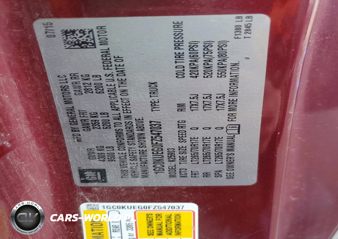 Copart Nr: C-49878226 VIN: 1GC0KUEG0FZ547037 Port: Elizabeth, NJ