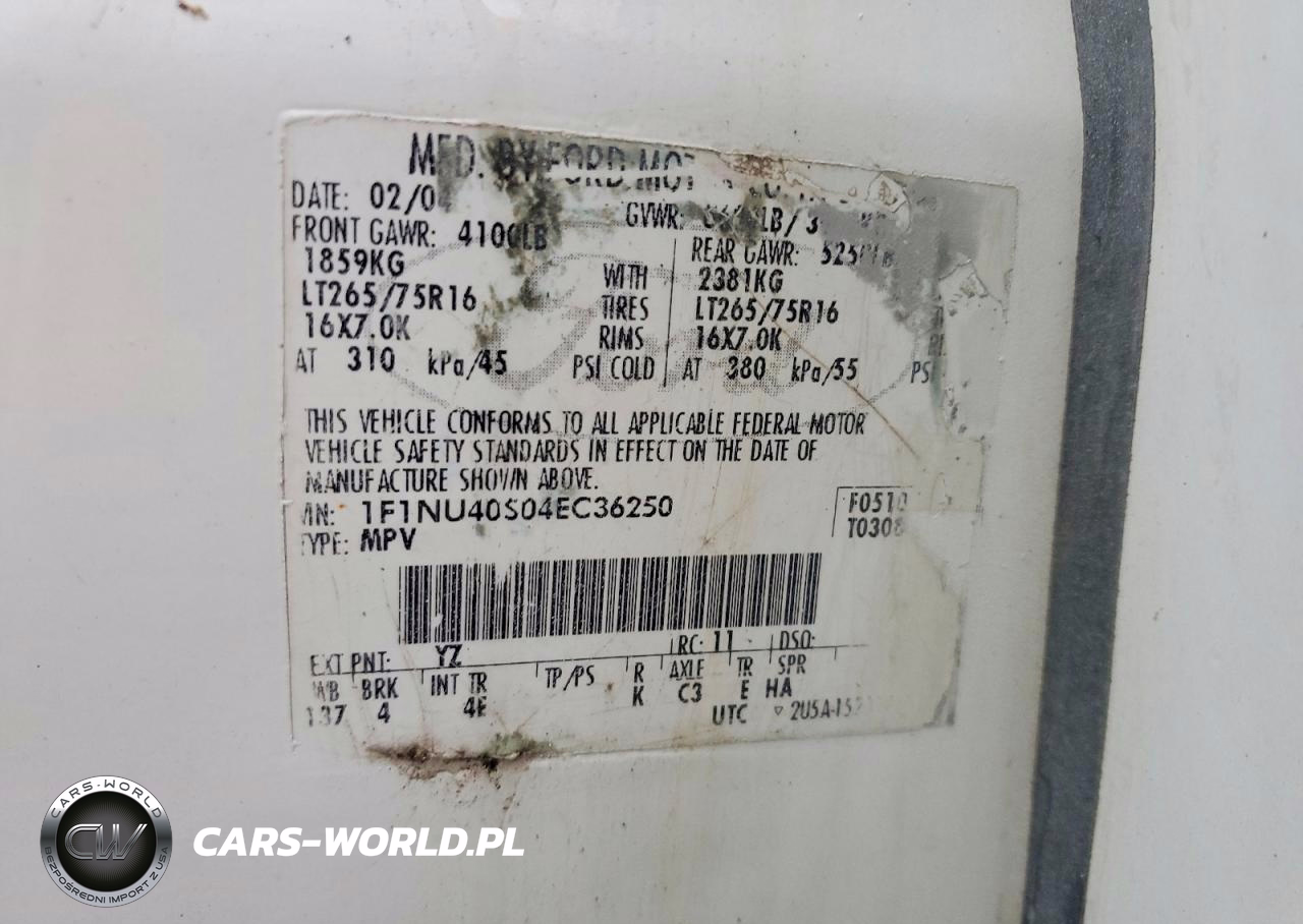Copart Nr: C-49897656 VIN: 1F1NU40S04EC36250 Port: Indianapolis, IN