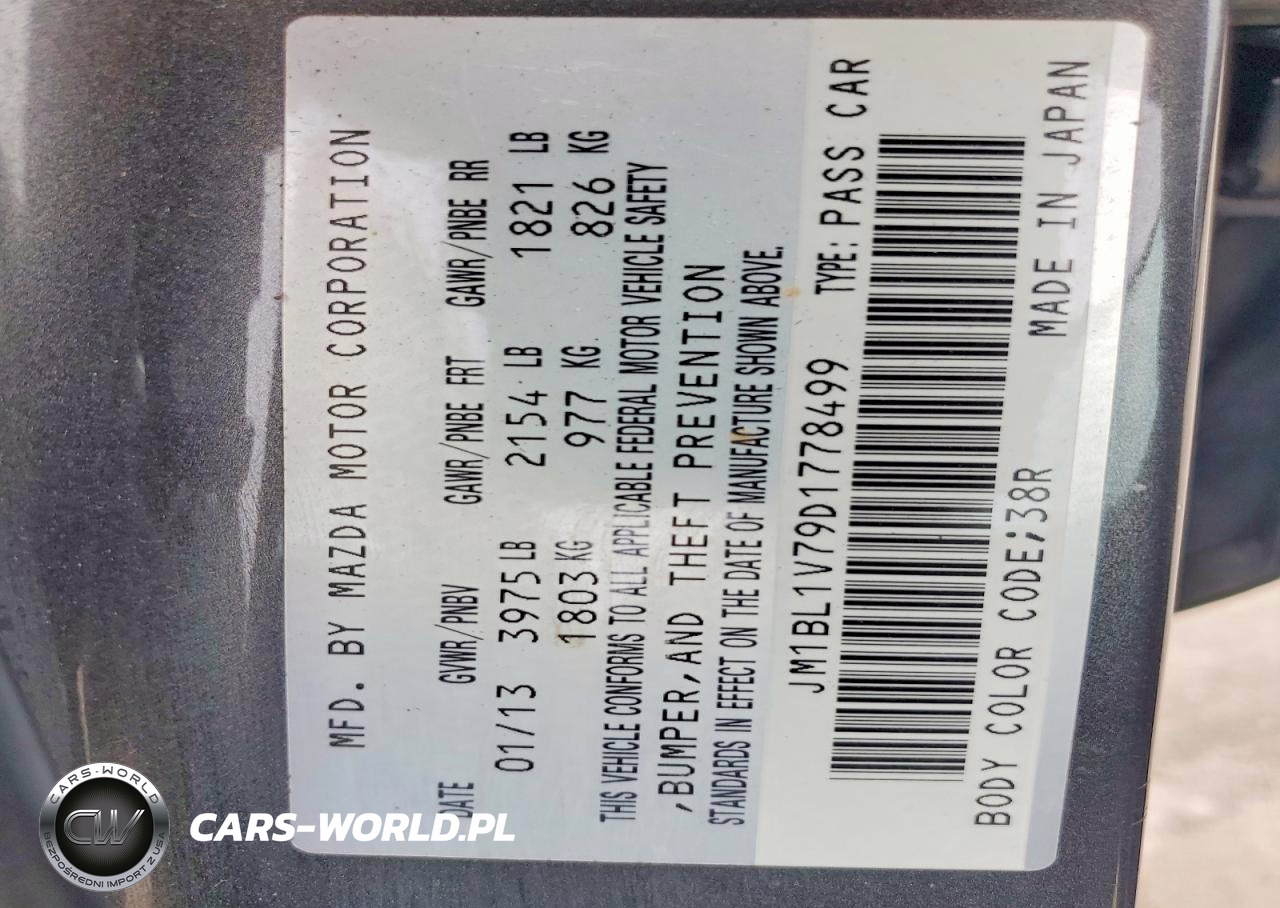 Copart Nr: C-49916346 VIN: JM1BL1V79D1778499 Port: Houston, TX