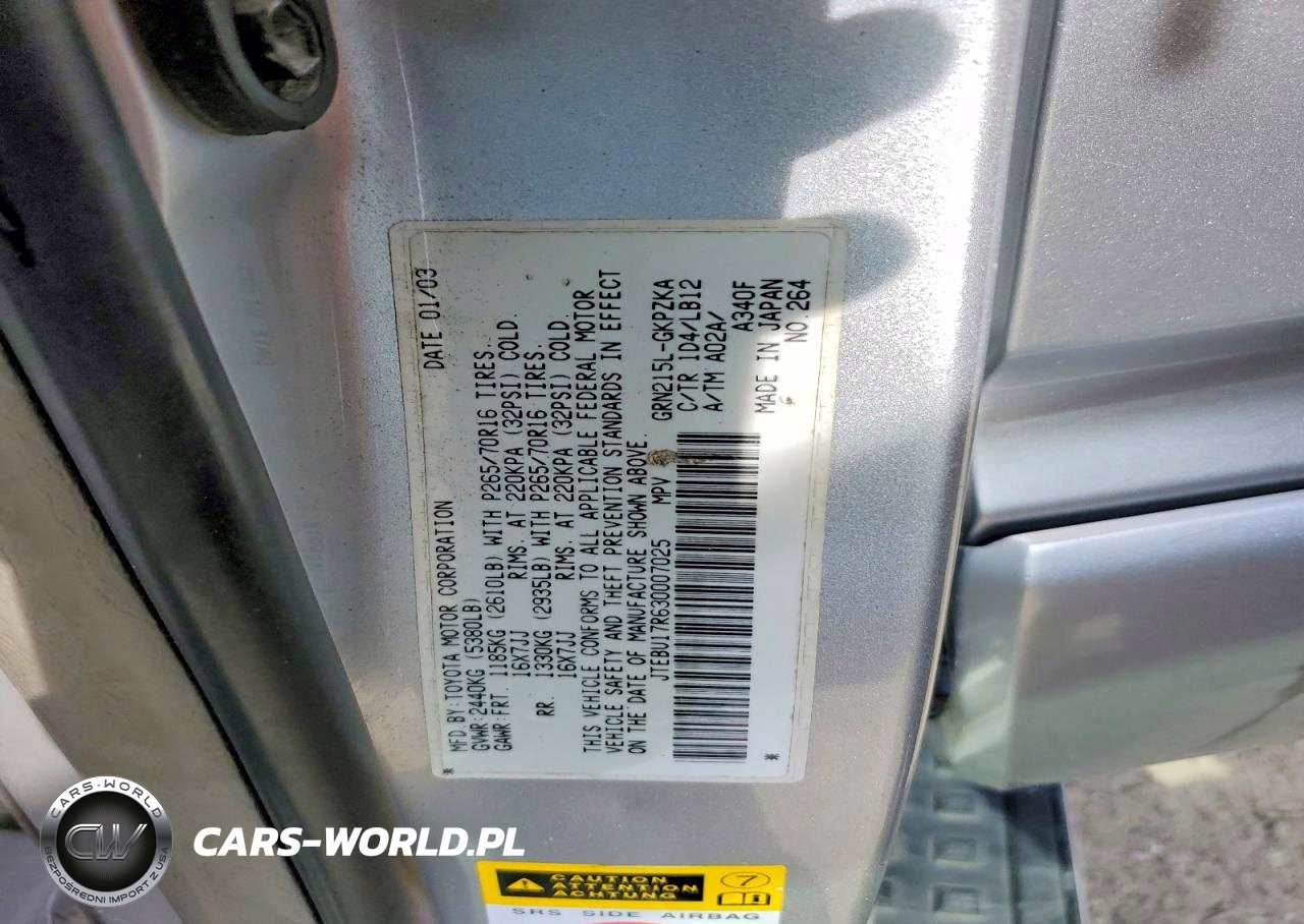 Copart Nr: C-49917386 VIN: JTEBU17R630007025 Port: Elizabeth, NJ