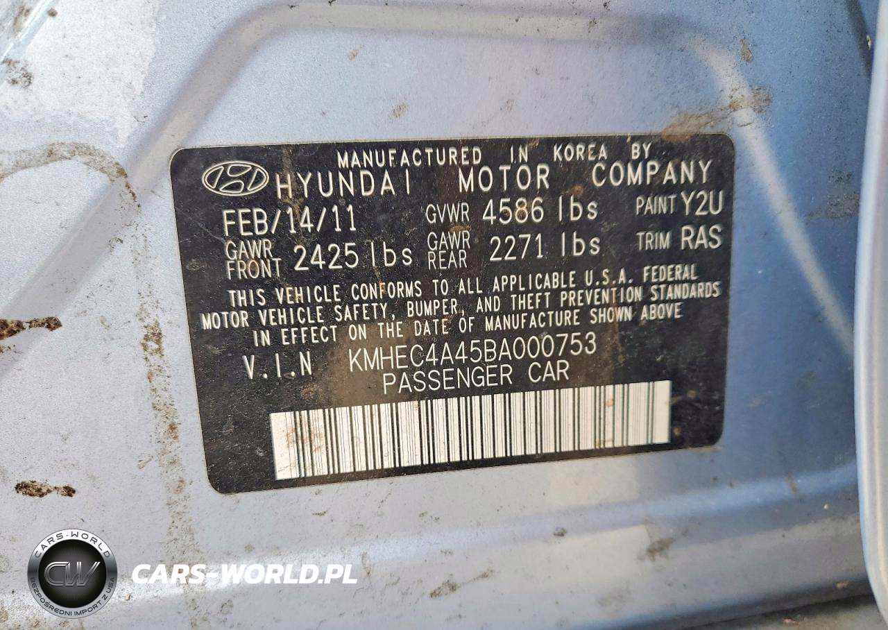 Copart Nr: C-49918946 VIN: KMHEC4A45BA000753 Port: Elizabeth, NJ