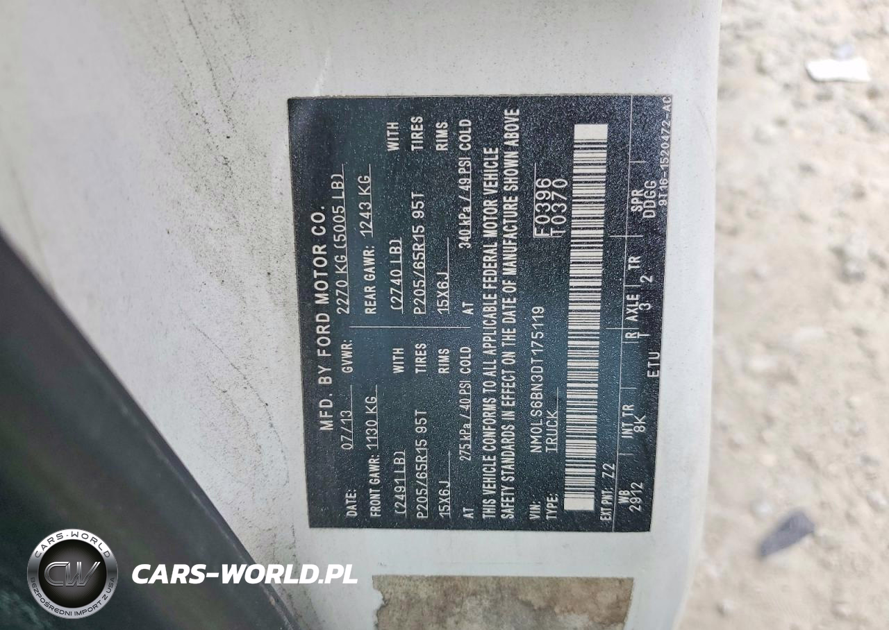 Copart Nr: C-49925696 VIN: NM0LS6BN3DT175119 Port: Savannah, GA