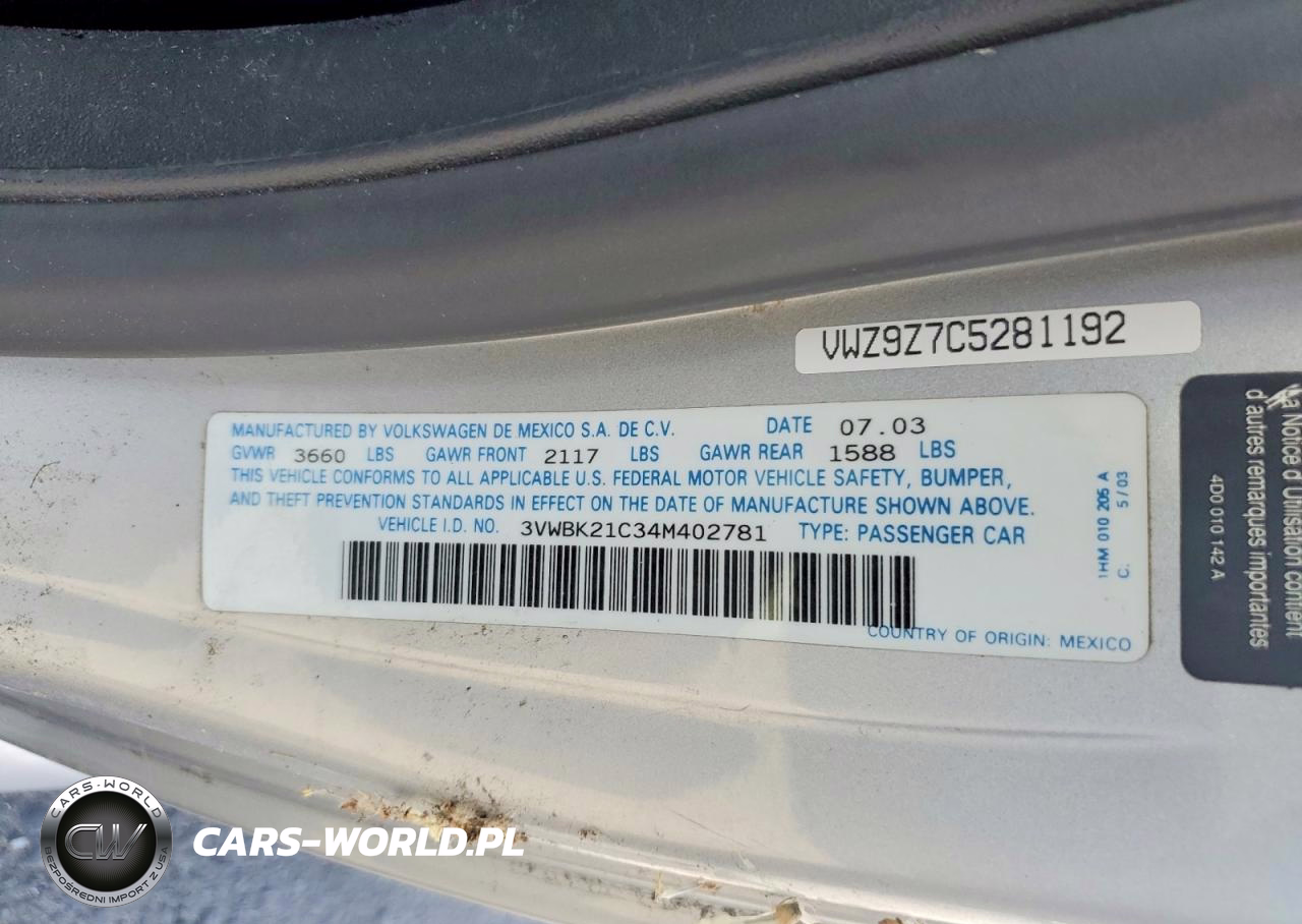 Copart Nr: C-49940086 VIN: 3VWBK21C34M402781 Port: Los Angeles, CA