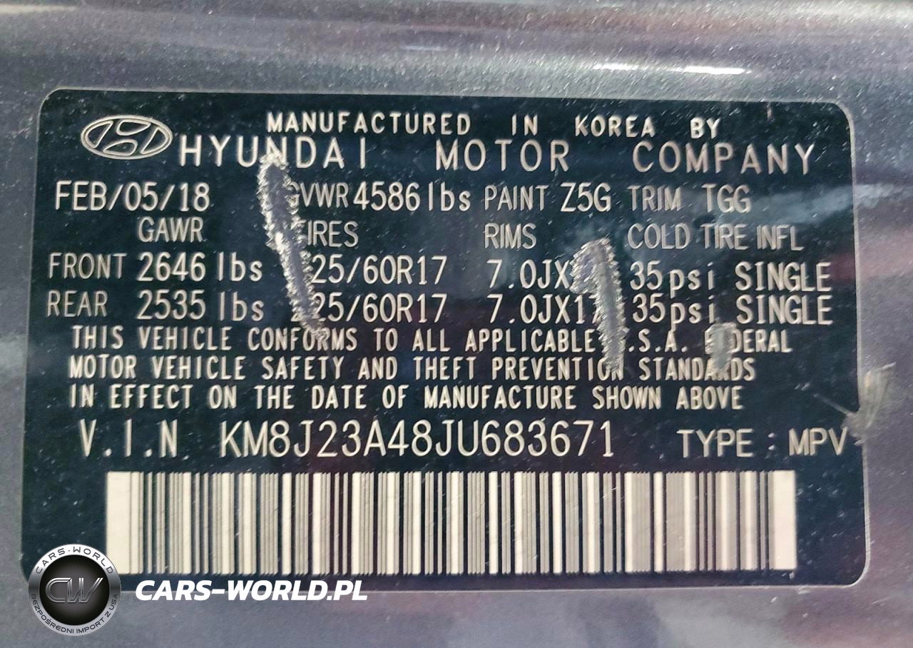Copart Nr: C-49940886 VIN: KM8J23A48JU683671 Port: Elizabeth, NJ