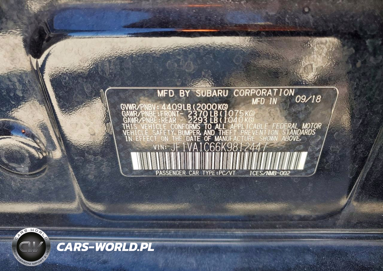 Copart Nr: C-49972746 VIN: JF1VA1C66K9812447 Port: Savannah, GA