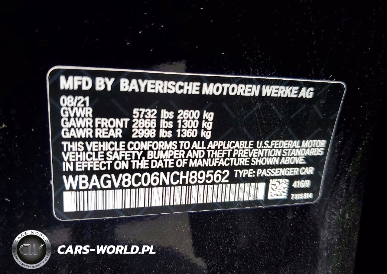 Copart Nr: C-49974606 VIN: WBAGV8C06NCH89562 Port: Elizabeth, NJ