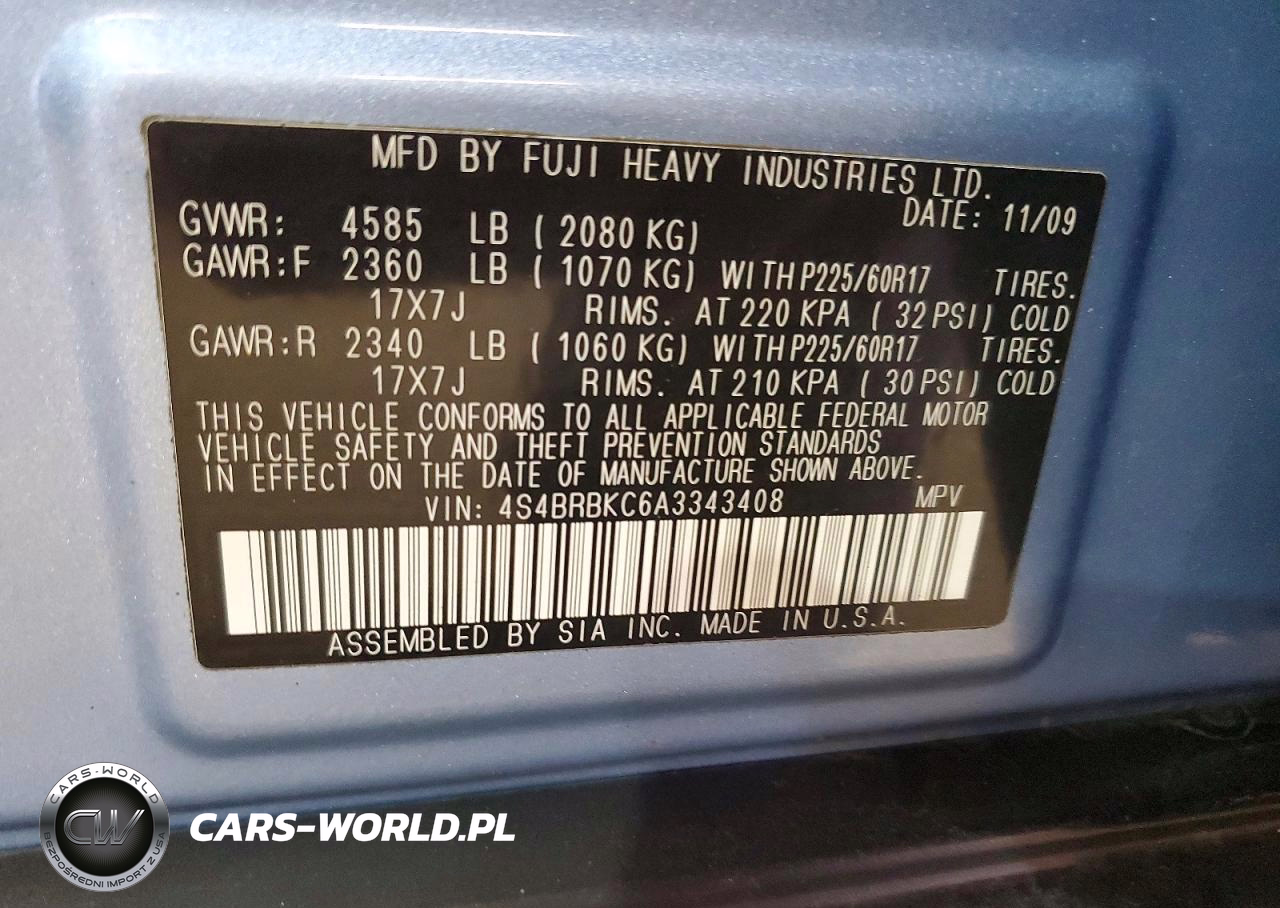 Copart Nr: C-49976076 VIN: 4S4BRBKC6A3343408 Port: Elizabeth, NJ