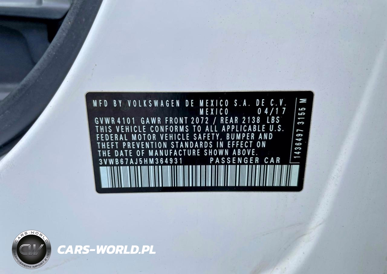 Copart Nr: C-49979746 VIN: 3VWB67AJ5HM364931 Port: Elizabeth, NJ