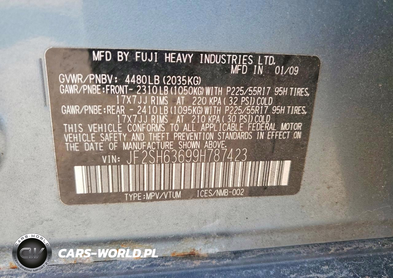 Copart Nr: C-49995336 VIN: JF2SH63699H787423 Port: Elizabeth, NJ