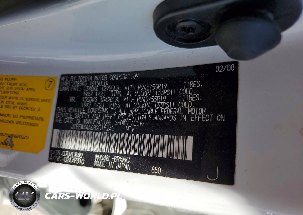 Copart Nr: C-50003166 VIN: JTEEW44A682015242 Port: Savannah, GA