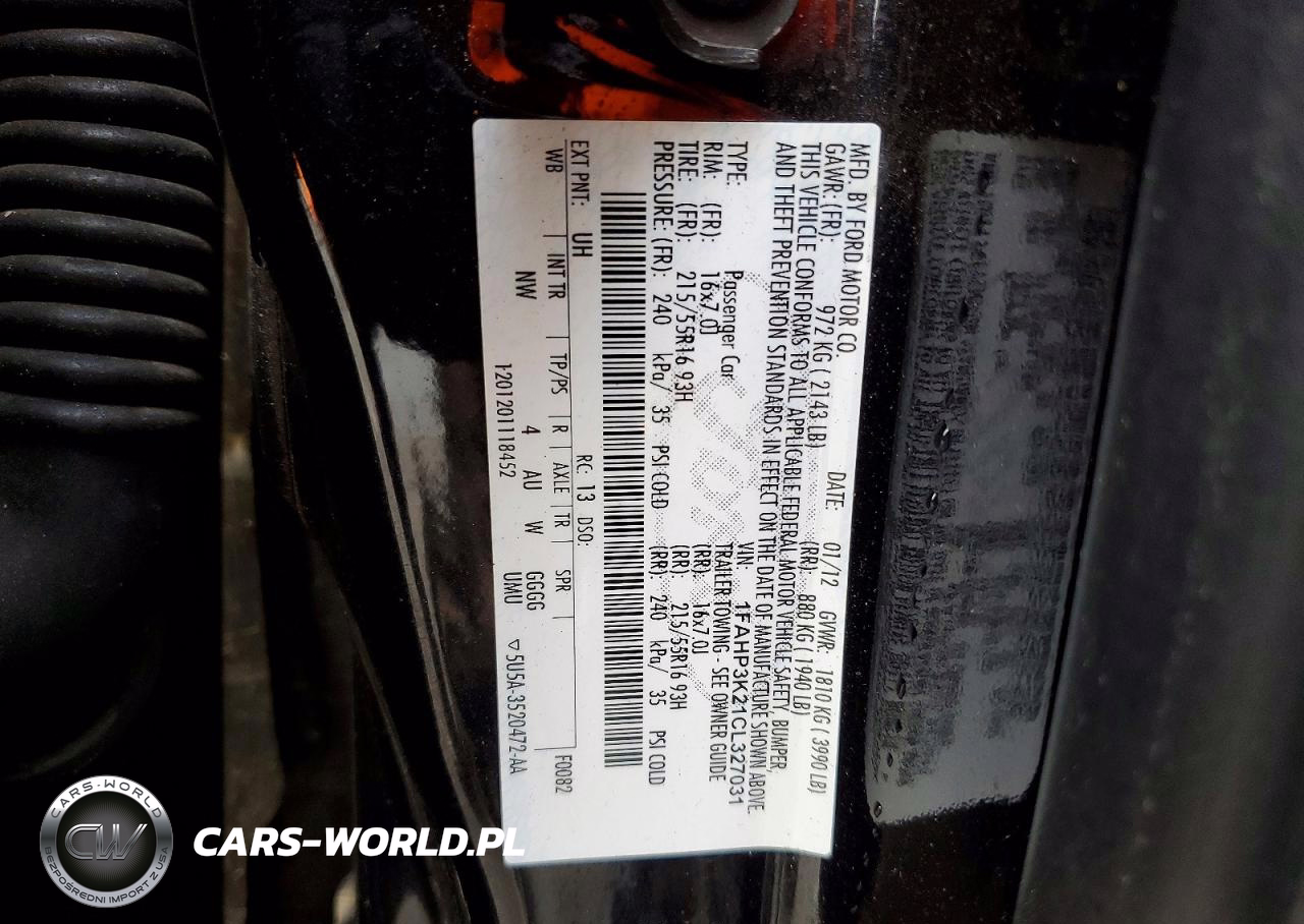 Copart Nr: C-50005926 VIN: 1FAHP3K21CL327031 Port: Elizabeth, NJ