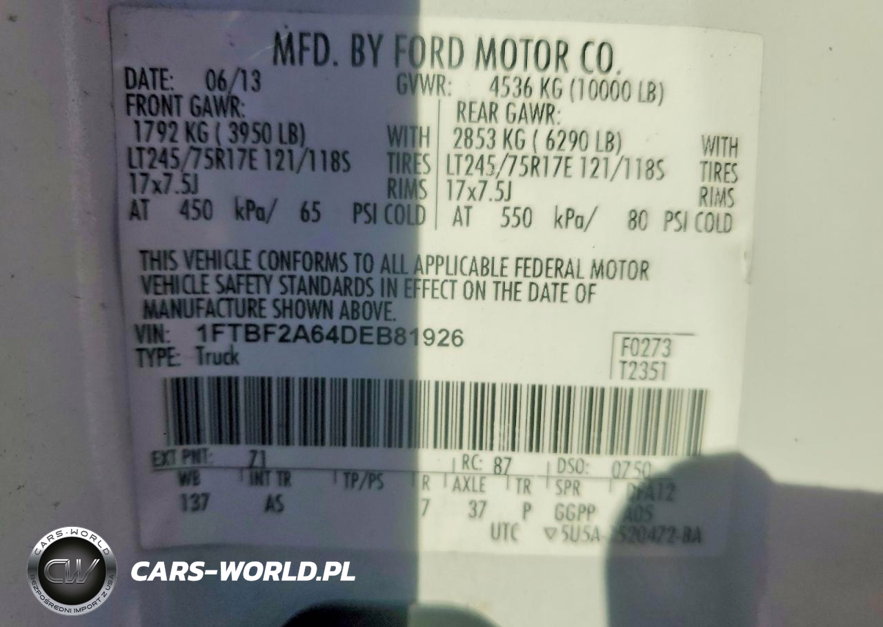 Copart Nr: C-50028106 VIN: 1FTBF2A64DEB81926 Port: Los Angeles, CA