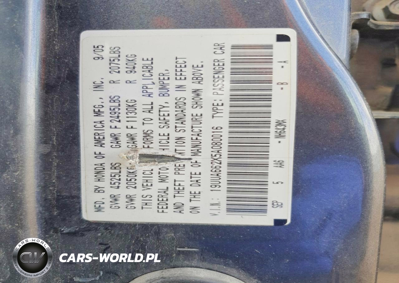 Copart Nr: C-50075416 VIN: 19UUA662X5A080016 Port: Houston, TX