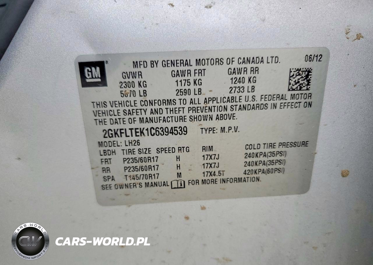 Copart Nr: C-50077896 VIN: 2GKFLTEK1C6394539 Port: Elizabeth, NJ