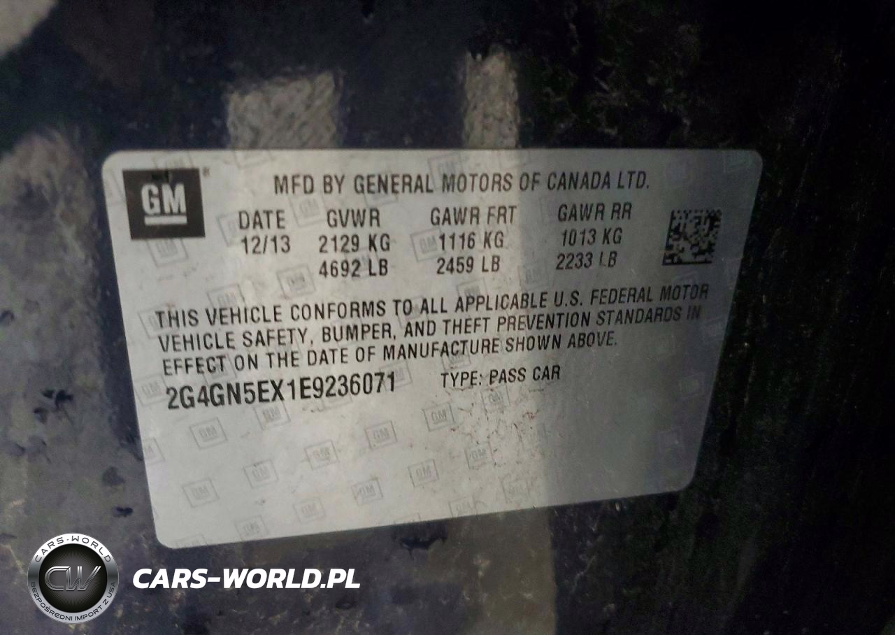 Copart Nr: C-50113536 VIN: 2G4GN5EX1E9236071 Port: Indianapolis, IN