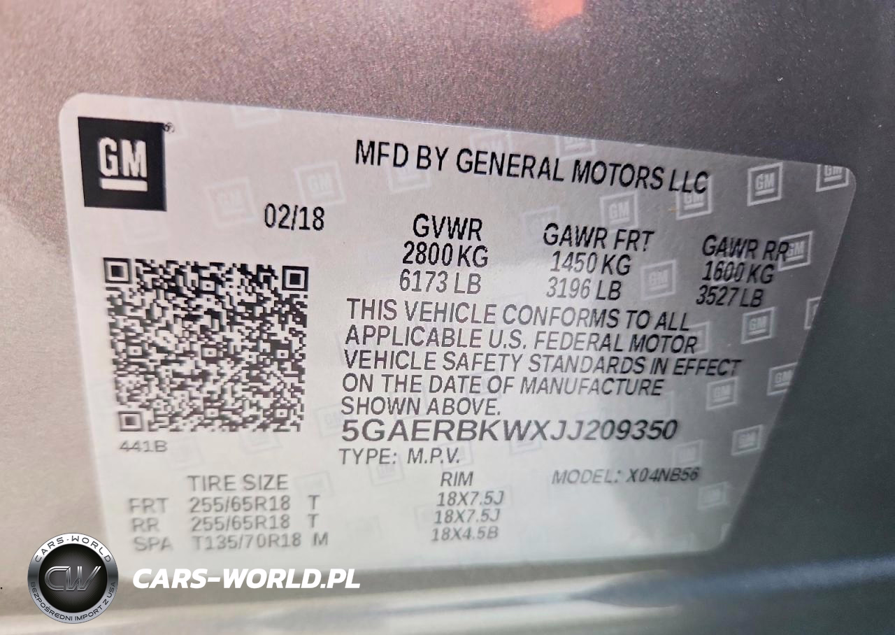 Copart Nr: C-50115496 VIN: 5GAERBKWXJJ209350 Port: Savannah, GA