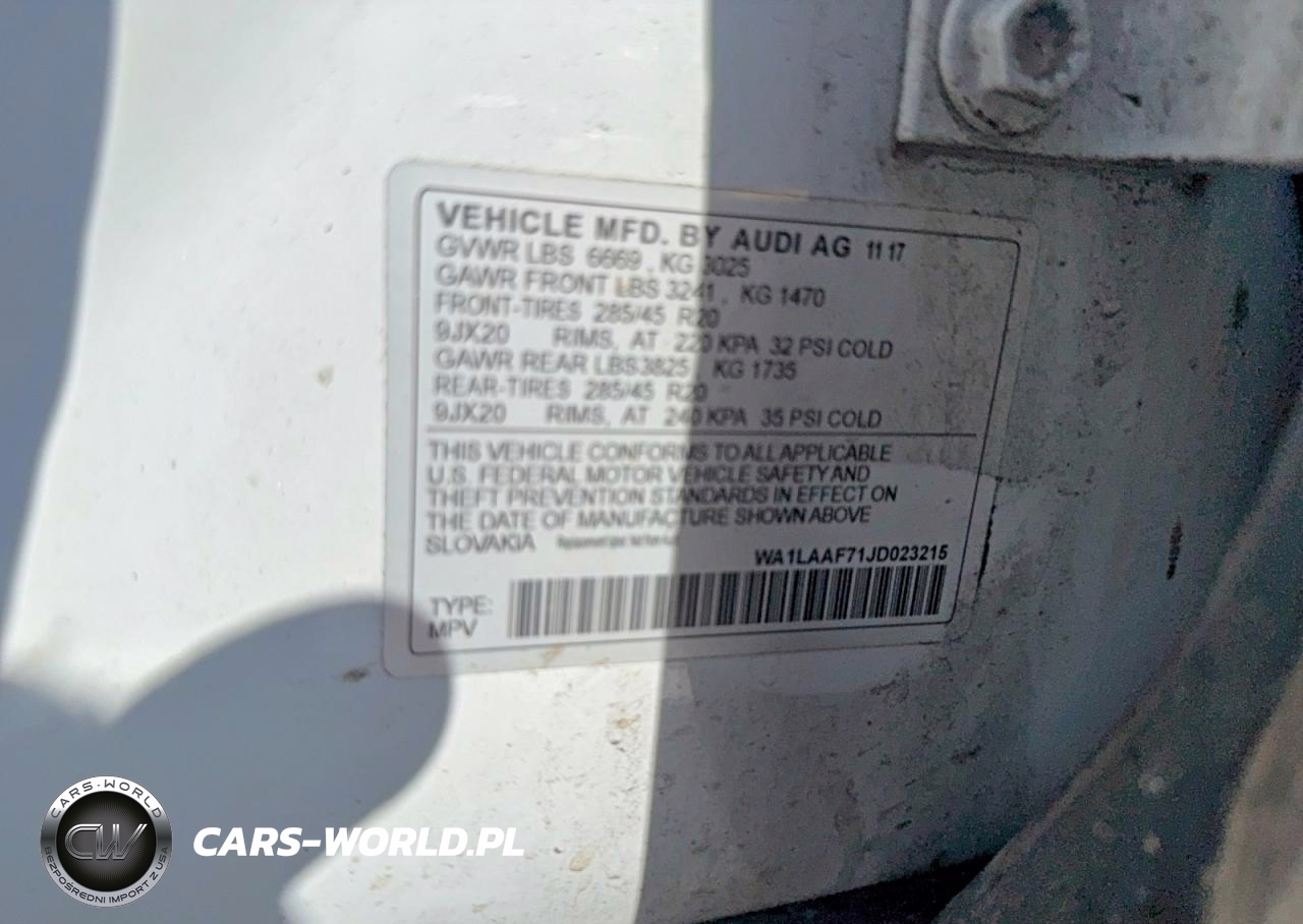 Copart Nr: C-50125236 VIN: WA1LAAF71JD023215 Port: Elizabeth, NJ