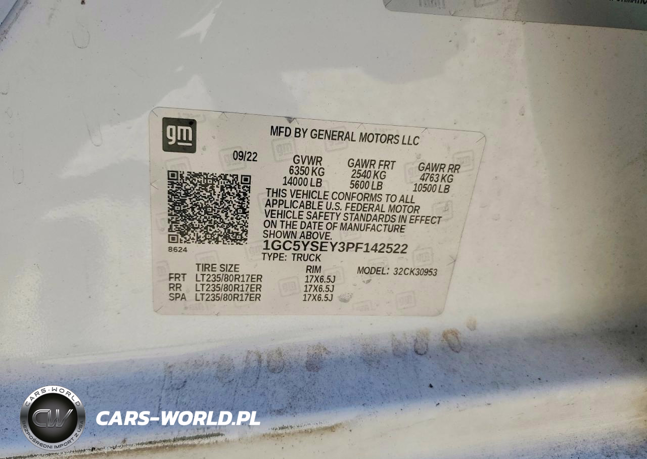 Copart Nr: C-50130246 VIN: 1GC5YSEY3PF142522 Port: Savannah, GA