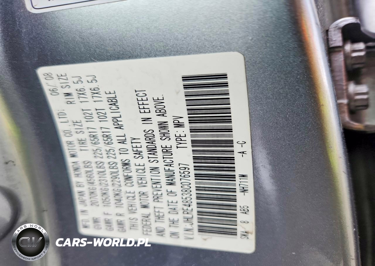 Copart Nr: C-50133916 VIN: JHLRE48538C076597 Port: Los Angeles, CA