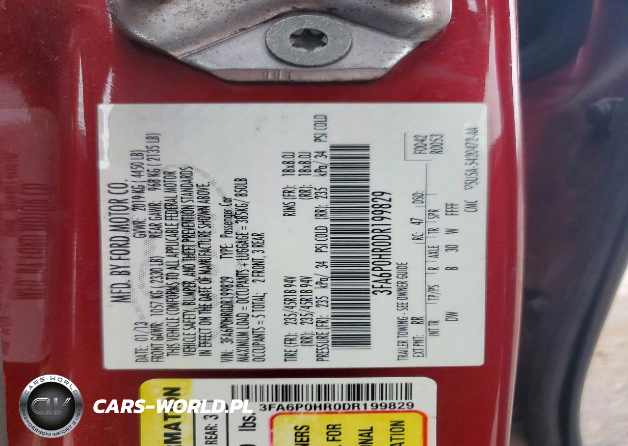 Copart Nr: C-50145446 VIN: 3FA6P0HR0DR199829 Port: Indianapolis, IN
