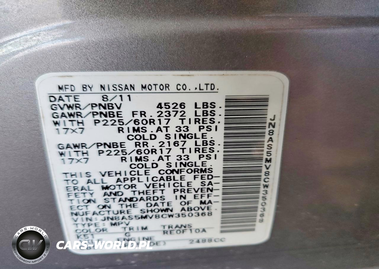 Copart Nr: C-50173566 VIN: JN8AS5MV8CW350368 Port: Elizabeth, NJ