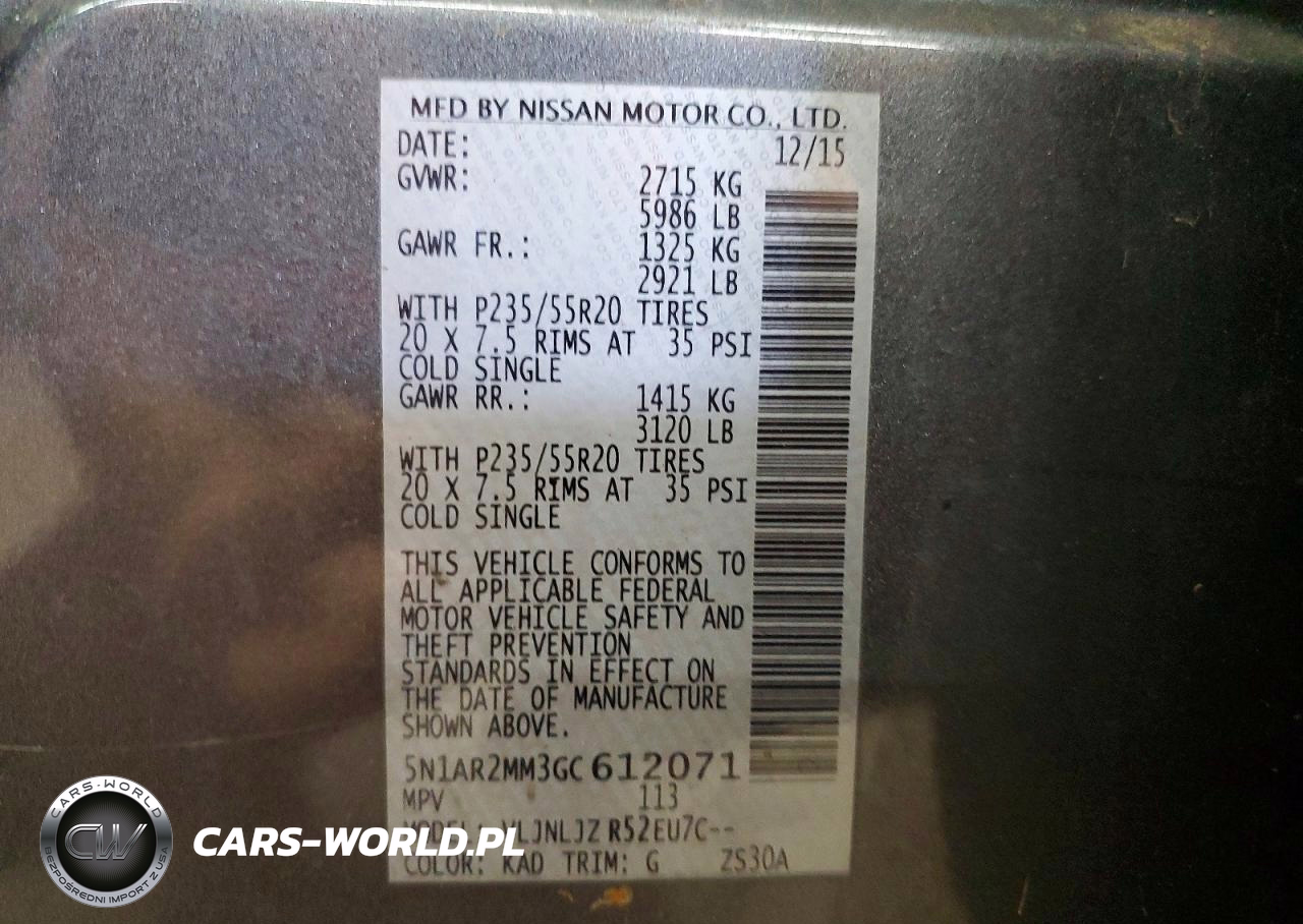 Copart Nr: C-50214876 VIN: 5N1AR2MM3GC612071 Port: Elizabeth, NJ