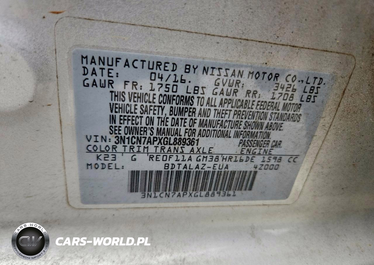 Copart Nr: C-50221206 VIN: 3N1CN7APXGL889361 Port: Houston, TX