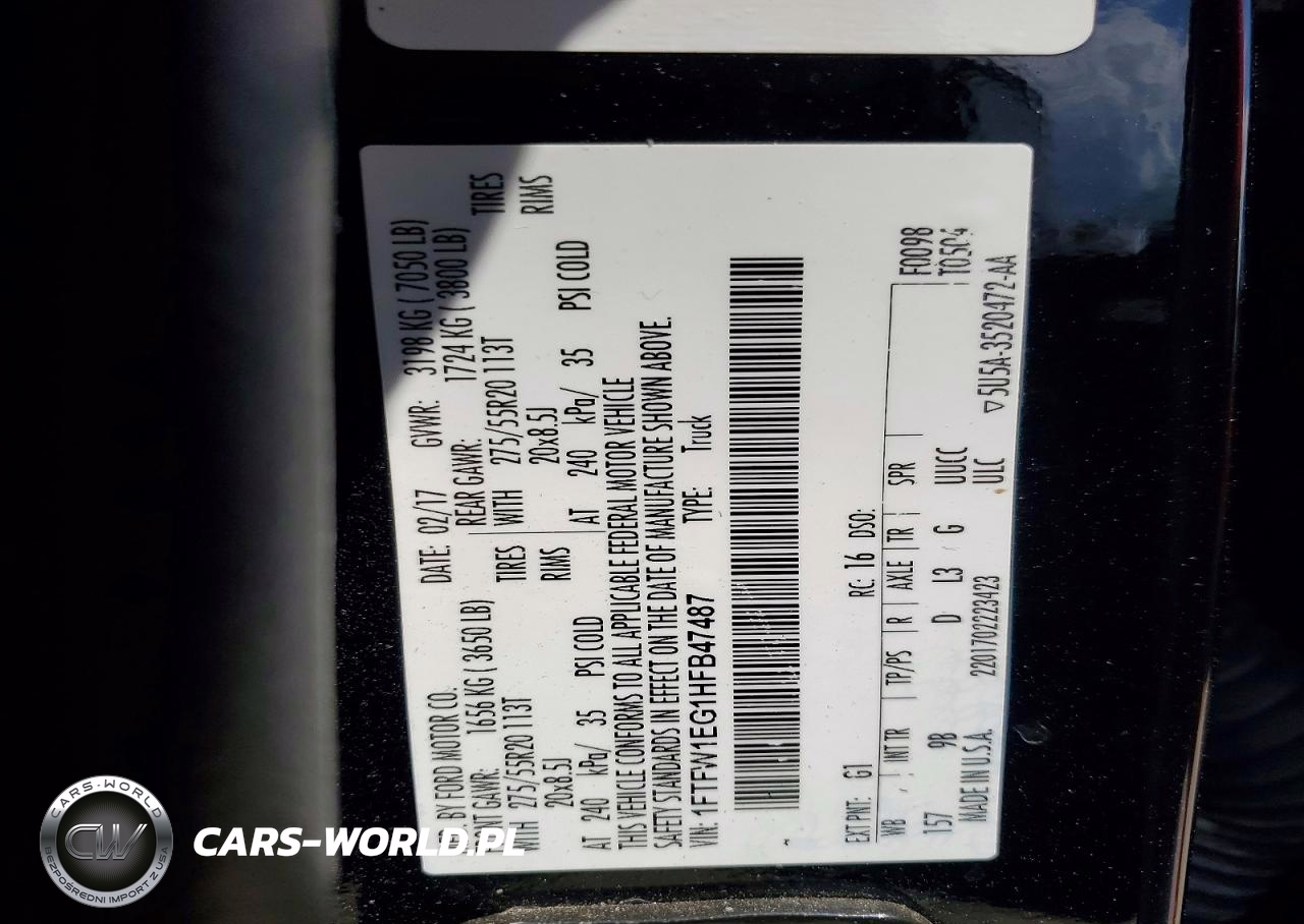 Copart Nr: C-50225806 VIN: 1FTFW1EG1HFB47487 Port: Elizabeth, NJ