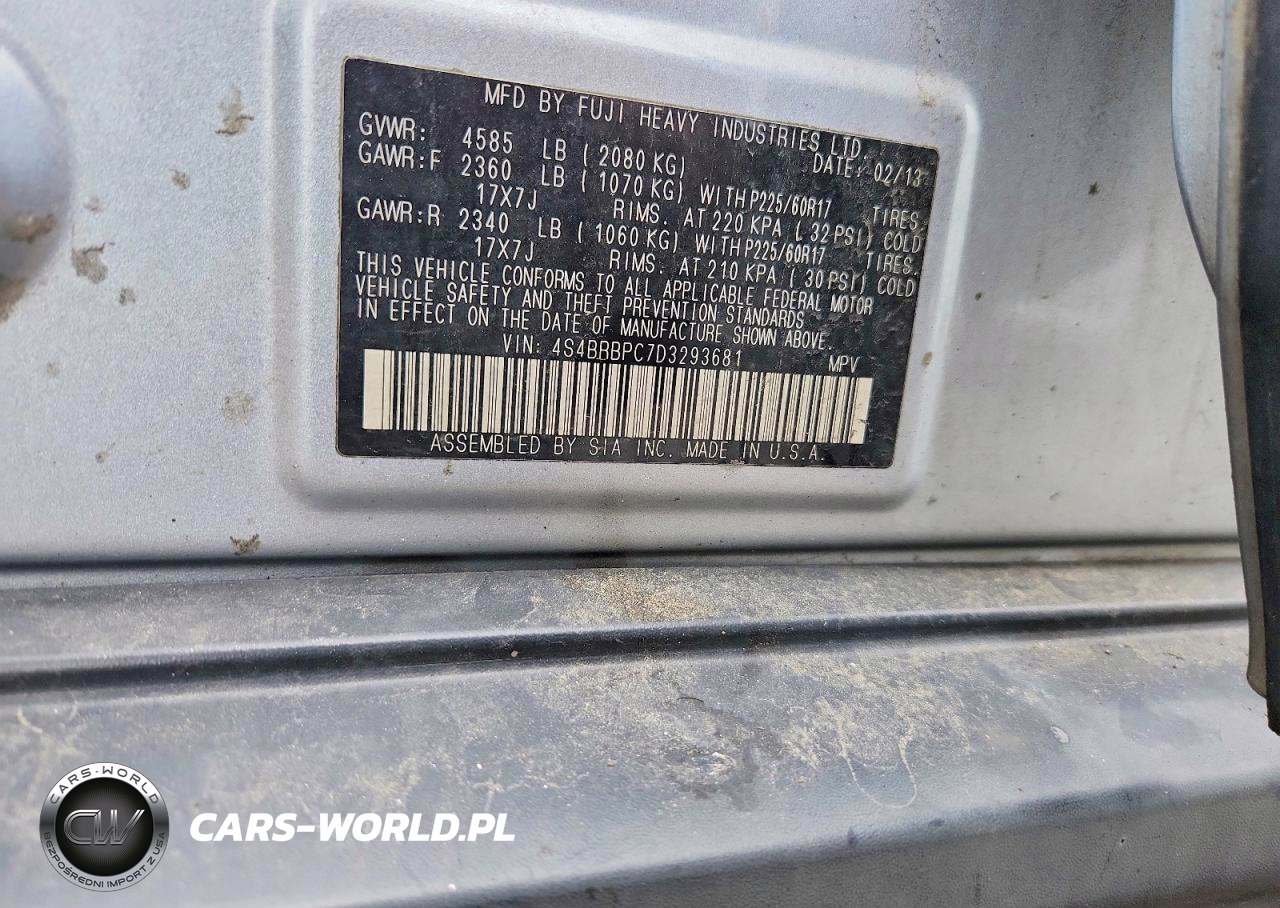 Copart Nr: C-50236876 VIN: 4S4BRBPC7D3293681 Port: Elizabeth, NJ
