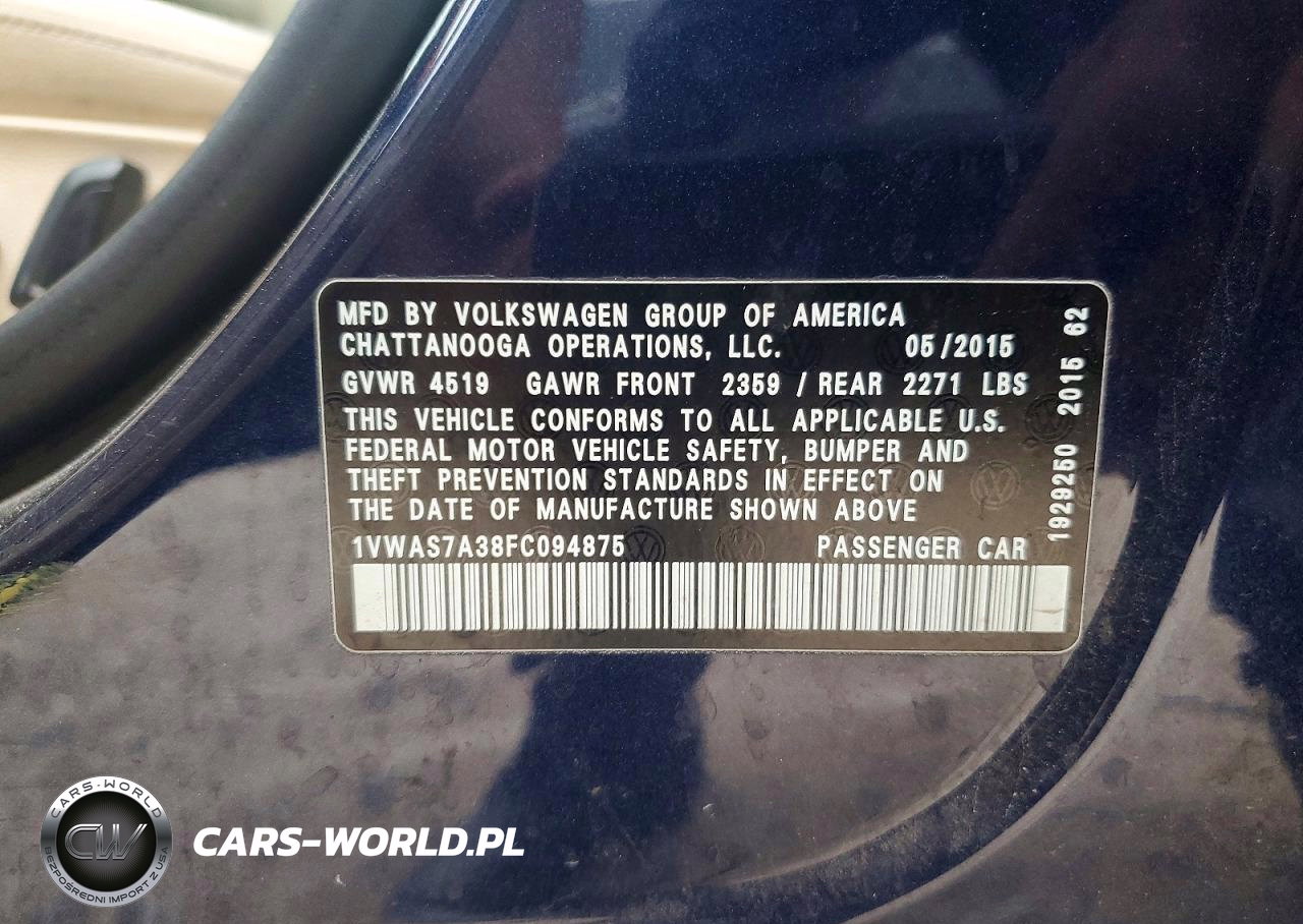 Copart Nr: C-50240466 VIN: 1VWAS7A38FC094875 Port: Houston, TX
