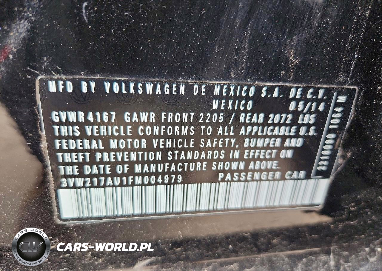 Copart Nr: C-50268866 VIN: 3VW217AU1FM004979 Port: Elizabeth, NJ