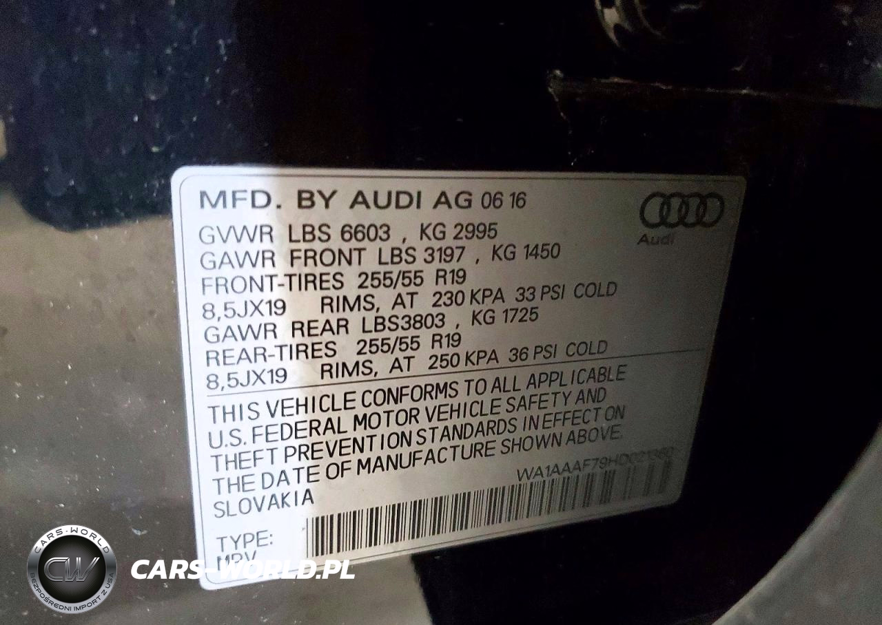 Copart Nr: C-50286476 VIN: WA1AAAF79HD021360 Port: Elizabeth, NJ