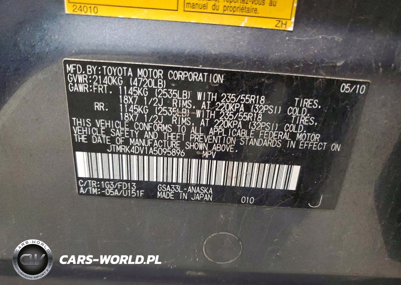 Copart Nr: C-50290706 VIN: JTMRK4DV1A5095896 Port: Elizabeth, NJ