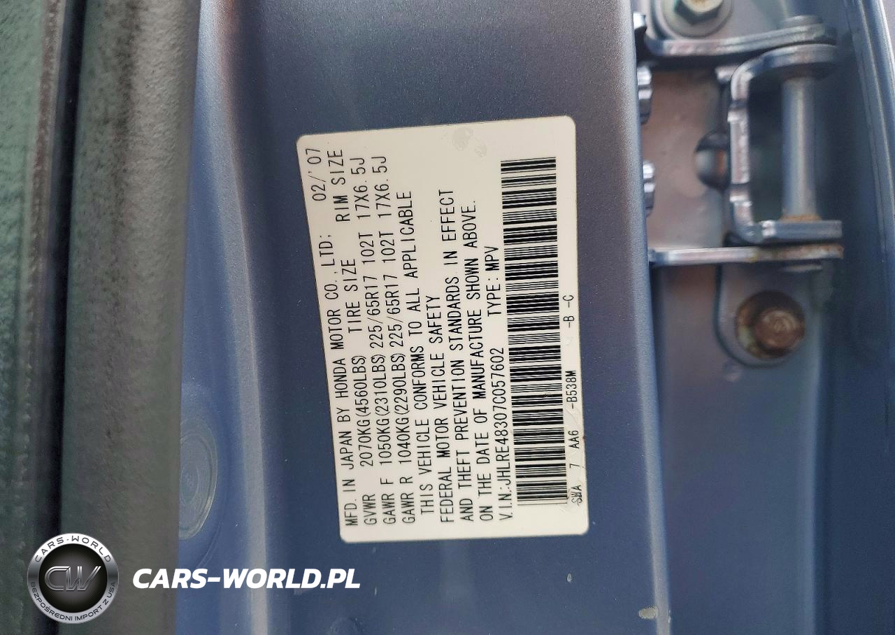 Copart Nr: C-50302496 VIN: JHLRE48307C057602 Port: Elizabeth, NJ