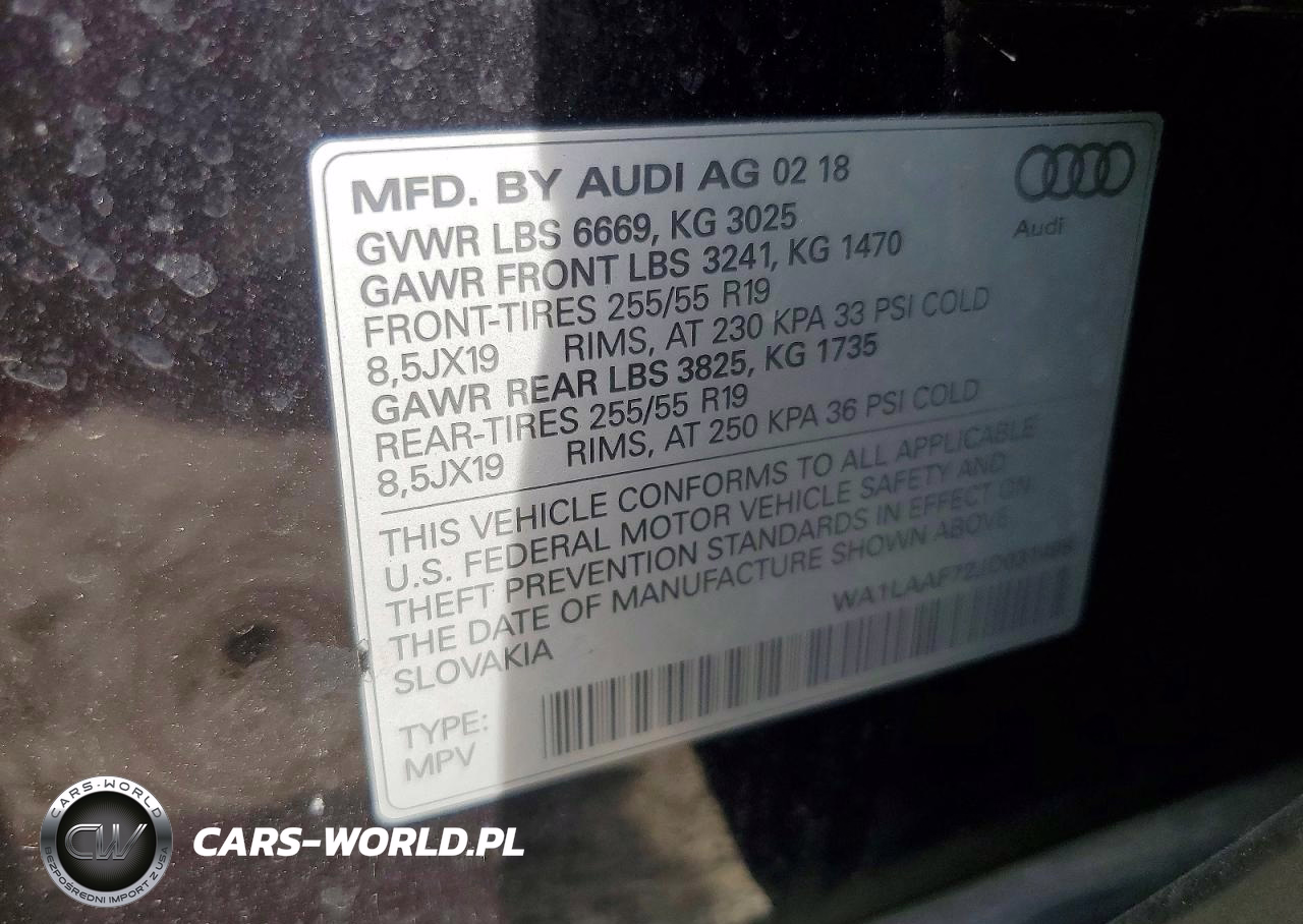 Copart Nr: C-50302516 VIN: WA1LAAF72JD031498 Port: Elizabeth, NJ