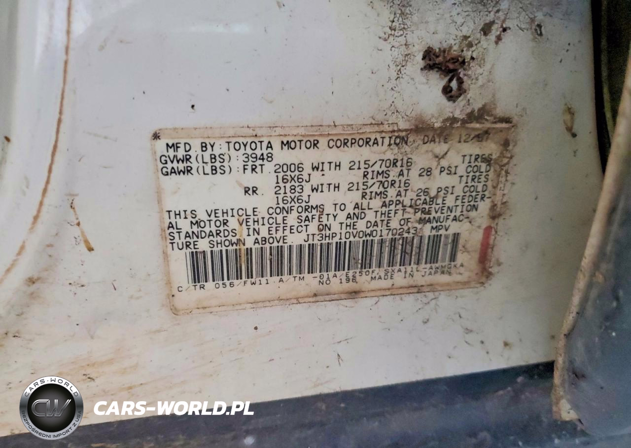 Copart Nr: C-50317106 VIN: JT3HP10V0W0170243 Port: Los Angeles, CA