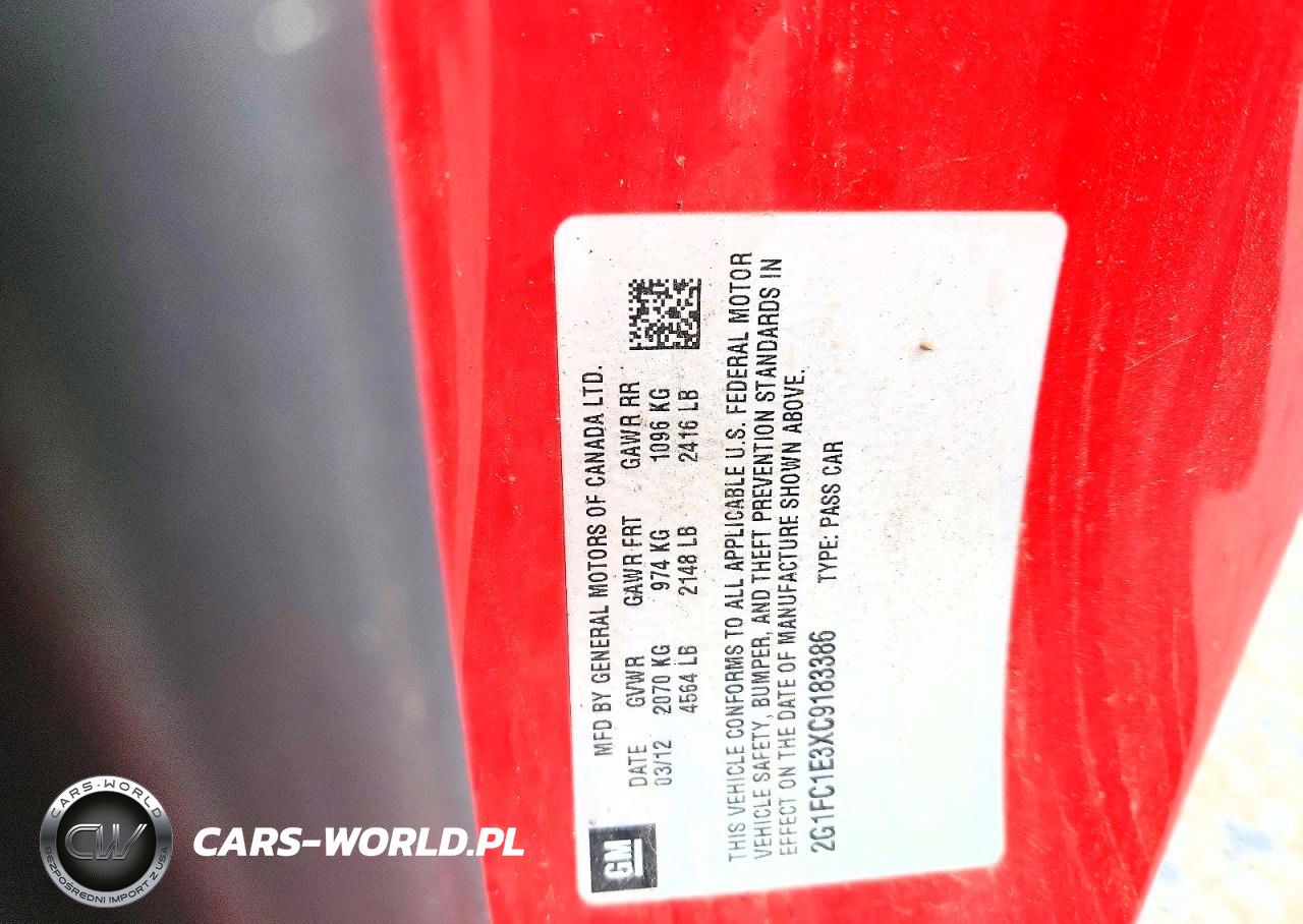 Copart Nr: C-50328986 VIN: 2G1FC1E3XC9183386 Port: Savannah, GA
